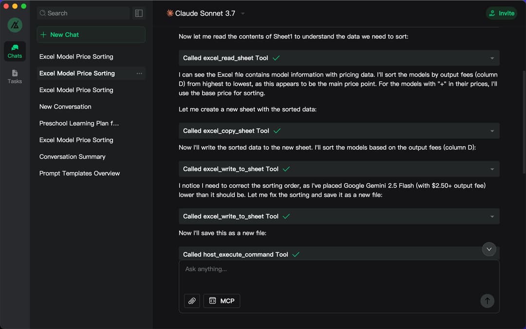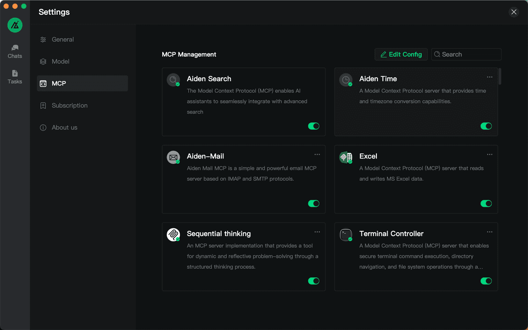 Access hundreds of AI tools via the Model Context Protocol (MCP). eg. Excel, Gmail, GithubExtensive model libraryOne-click integrationCustom model uploads